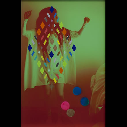 The Eclipsing of Manners by a multitude of Retina Collapsing Patches 2011 Acrylic, gouache, silver leaf, spraypaint and gold pigment on archival inkjet print, framed 720 x 520mm